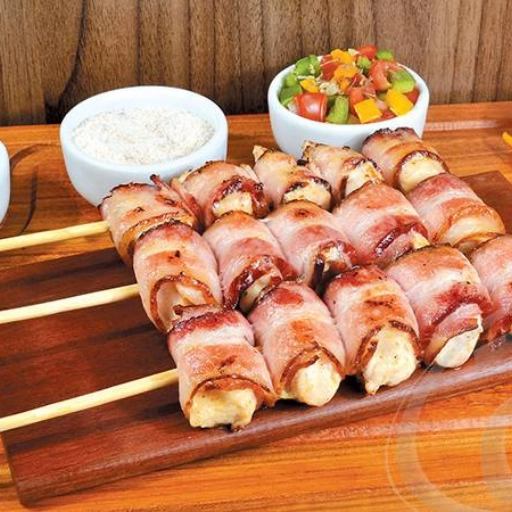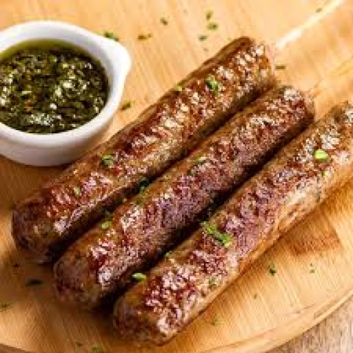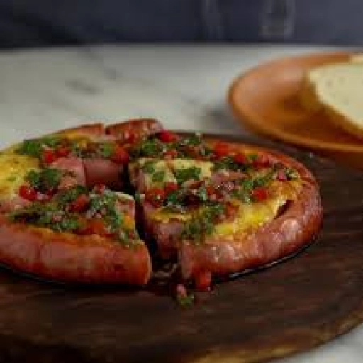 Linguiça c/ queijo maçaricado e molho chimichurri